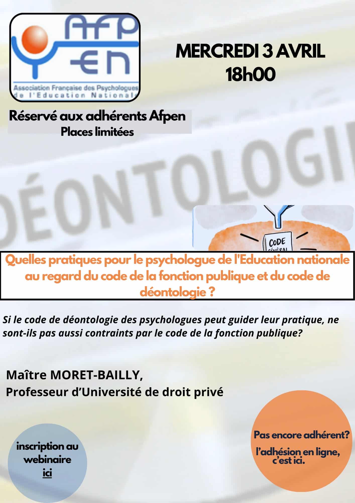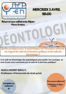 Protégé : DEONTOLOGIE: Webinaire du 3 avril : Replay disponible ici
