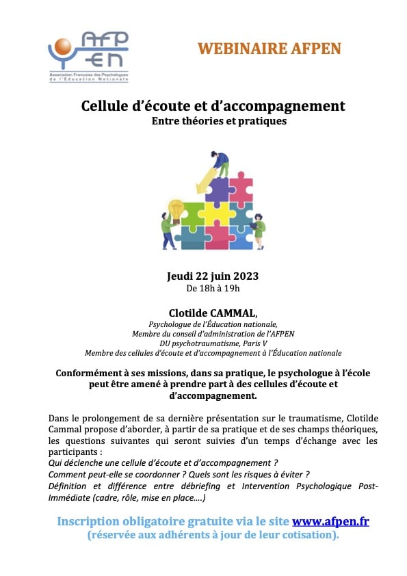 L’AFPEN vous invite le 4 février prochain à un webinaire consacré à un enjeu central pour notre profession : faut-il privilégier une réglementation du code de déontologie ou la création d’un ordre des psychologues ? À l’heure où les missions des psychologues de l’Éducation nationale évoluent et se complexifient, clarifier le cadre éthique et professionnel devient essentiel. Ce webinaire apportera des repères juridiques et déontologiques, éclairera les conséquences possibles de chaque option et permettra d’en mesurer les impacts concrets sur nos pratiques quotidiennes. Un rendez-vous incontournable pour comprendre les orientations en débat et participer à la réflexion collective.